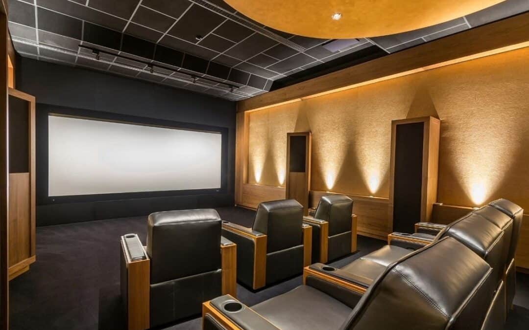 Have you been to a cinema with tiles on the floors? You didn’t think so. Carpet improves the quality of your sound by preventing sound from echoing. The walls get lined with fabric, and furniture with plush cushions also aid.